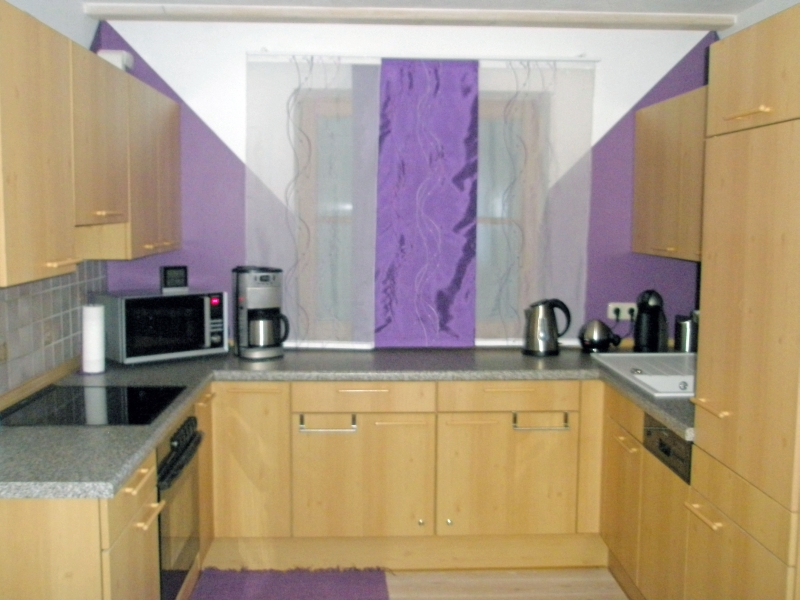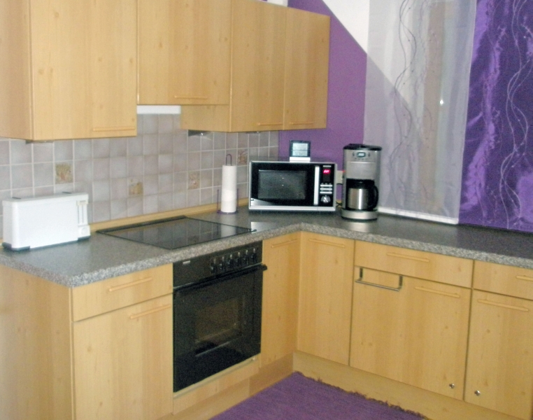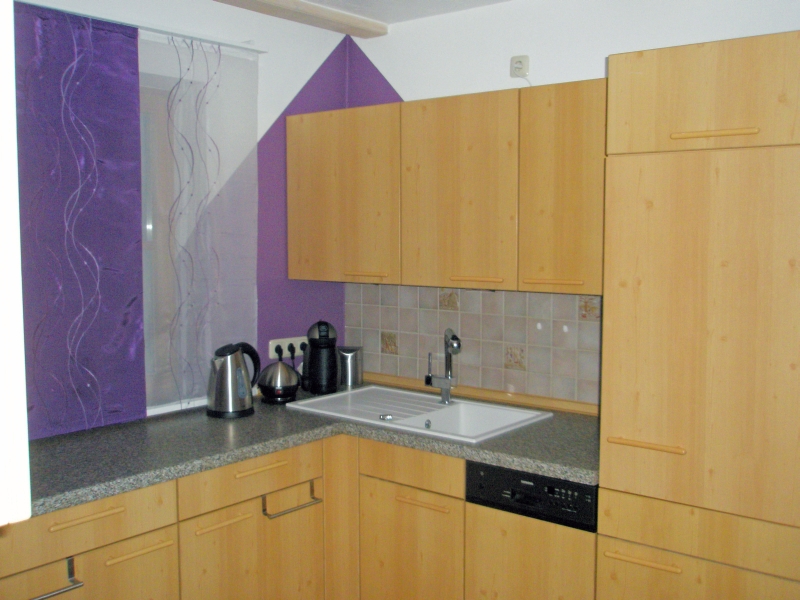 Ein Herd mit Backofen, ein Kühlschrank, eine Spülmaschine und eine Mikrowelle gehören zur Grundausstattung. Eierkocher, Wasserkocher, Toaster, Rührfix, Töpfe, Geschirr, Besteck, Gläser usw. es ist an alles gedacht. Die Dolce Gusto Kaffeemaschine wird dem Geschmack aller gerecht.