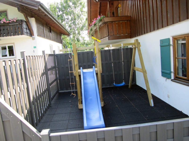 Egal ob beim Klettern, Schaukeln oder Rutschen - hier werden Ihre Kids jede Menge Spaß haben. Zur Sicherheit ist der Boden komplett mit Fallschutzmatten ausgelegt.