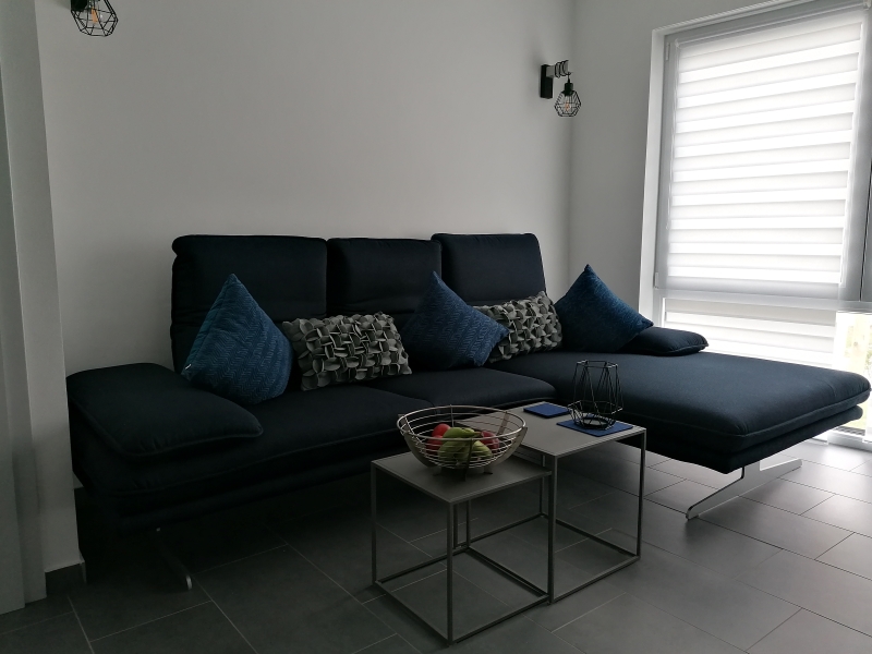 Unsere hochwertig ausgestattete Wohnecke läd zum gemütlichen Verweilen ein.